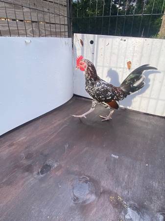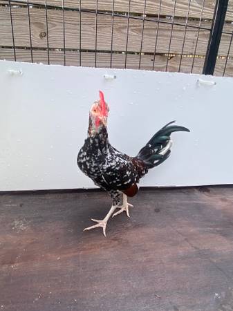 For sale - Young bantam speckled sussex cockerel. Asking $10.00 cash. You pick up. If interested, text