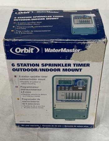 Open box never used. 6 station sprinkler timer with selection of days and times and selectable duration of sprinkler timing. $60 or best offer or trade for something.