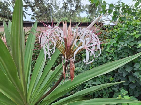 The unique Asiatica Queen Crinum Lily will sure to WOW you! The green with purple edged fronts will add a beautiful contrast to any garden or container. The green/purple foliage is offset with white/purple spider-like blooms. Plant in your garden bed or in a container to add some tropical interest to your garden! I LOVE THE SYMMETRY !