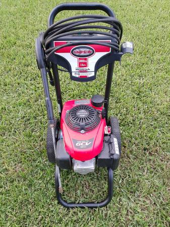 Simpson 3000 psi. pressure washer. Powered by a Honda GCV 190 engine. Starts easily, works perfect. 2.4 GPM. Includes 25' high pressure hose, wand and nozzles. Excellent condition. $200.