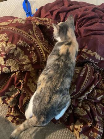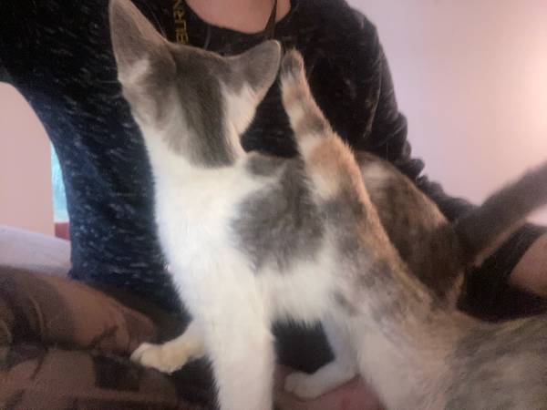 1 tabby female ( fixed ) and one black botched, white male cat ( not fixed ) Both are 6 months old. Prefered to say together.