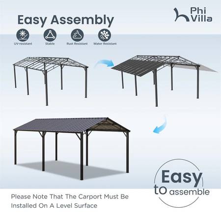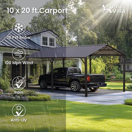 $700 Firm - No Offers. New 10x20 Galvanized Metal Carport Kit - Plans Changed and Not Needed. Easy DIY assembly carport kit with step-by-step instructions, slip-fit connections with pilot holes and self-drilling screws for quick assembly. Heavy-duty thicker galvanized steel roof and frame are powder-coated to resist corrosion, rust, UV, and rain damage - perfect for Florida with wind rating up to 100mph. Great for cars, trucks and boats up to 19-feet long or backyard workshop and picnic area. Kit is still new and sealed in three boxes, longest box is only 82" long (6 feet, 10-inches), should easily fit in the back of most SUV's or pickup trucks.