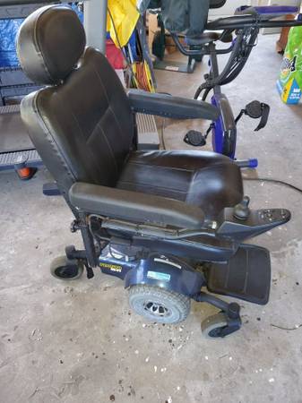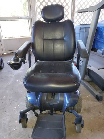 Black leather seat, joystick control, sturdy design. It belonged to my mother who passed away in 2024. Hoping to find a home for it. It works great. It's for sale to a good home! The batteries were replaced 7/7/25. Price is semi-negotiable as the batteries were almost $200 to replace. Can deliver within reason.
