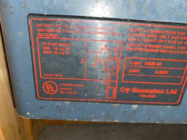 Amerec wood sauna $1599 Polar Sauna HMR 45 Sauna Heater plus $250