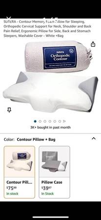 I purchased 6 of these pillows on Amazon for 59.99 each plus tax only using 4 of them so i decided to sell the other 2 that i am not using. Will sell for half of what i paid for them less the tax $30 each or both for $50. There is great reviews on these pillows. This pillow is a mid plush memory foam. It has space on the sides for your arms and on the front for your neck.