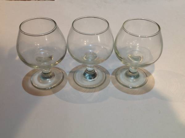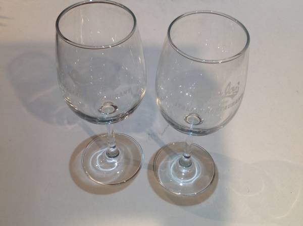 3 small brandy glasses $6 2 tall glasses $2 4 wine glasses with etched floral $8 2 wine glasses with etched "Papa Joes" $4 6 blue wine glasses short stem etched floral $12 2 glasses with etched...