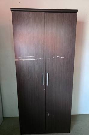Storage Unit Dark Brown (Cabinet or Wardrobe Combination) Packing tape used to keep doors closed during move peeled stain. Pick-up only, no delivery available.
