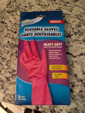 Selling a pair of brand new, reusable pink gloves. Asking $1.