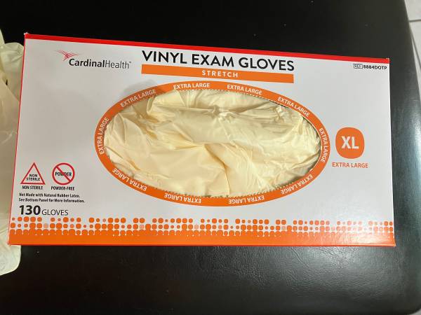 Vinyl Gloves size XL and size L great for Housework or Garage work Will sell case of 10 boxes for $50 All brand new unopened value $10- $12 Retail Call