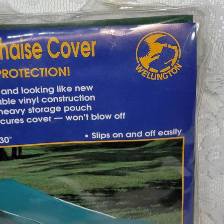 Universal chaise cover. All-season protection with durable vinyl construction. Easy to slip on and off.