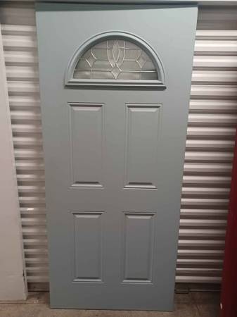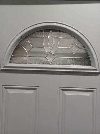 Jeld Wen Steel Entry Door Fan Lite Decorative Glass Serenity finish
