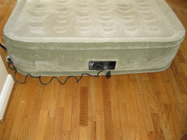An Ozark Trail inflatable queen size bed. This twice used bed is outstanding for handling overflow guests, dorm room, awaiting arrival of furniture, etc. The nice thing about this bed is that it has a self inflating motor. Inflates is a matter of minutes and deflates about the same time...no need to wait around forever while it deflates. If you have an inverter for your car, this is the answer for those camping trips that require a nice, comfortable place to sleep.