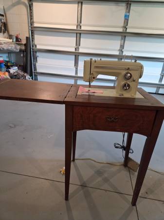 Kenmore sewing machine serviced yearly (most recent, January 2025). Excellent condition. $400. Includes cabinet