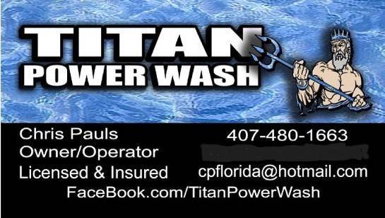 Hello! I'm Chris Pauls, Owner of Titan Power Wash LLC (407)480-1663. I have owned this soft wash and roof cleaning company for over a decade in Central FL. We are one of the original softwash roof cleaners in Central FL. We specialize in all aspects of pressure washing/soft washing/roof cleaning. Commercial and Residential. Call me for any of your pressure washing / soft wash needs! I guarantee you professional service. Thanks in advance!
