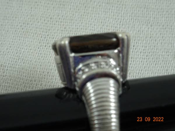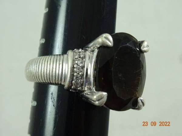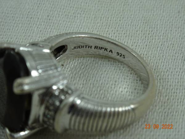 “Great condition ring, Flat face faceted stone 16mm x 14mm set in designer Sterling Silver 925 Pave Diamondique stones accent both sides,Has been worn and has some band scratches, light nicks as shown in pictures # 5, 6, 8, 10 and 11- zoom to see clearly. Please zoom into all pictures for details. Additional pictures available upon request
