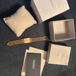 Seiko gold tone for men or women -Like new- 7 in band or men or women - model 7N29-5B29- works great comes with all packaging- and brand new battery-great for a gift