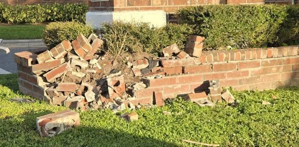 Looking for a licensed and insured brick mason or highly skilled repair professional to rebuild a damaged brick section at the entrance to a residential community.