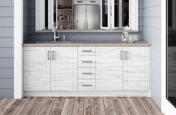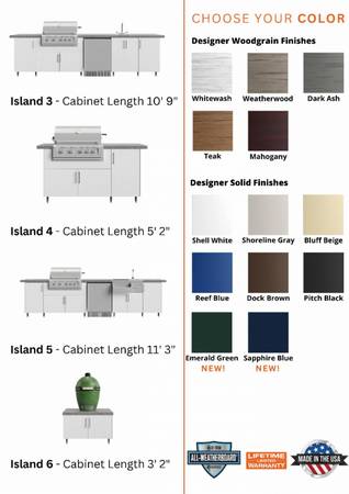 Weatherproof Patio cabinetry, 4 styles, several colors.
