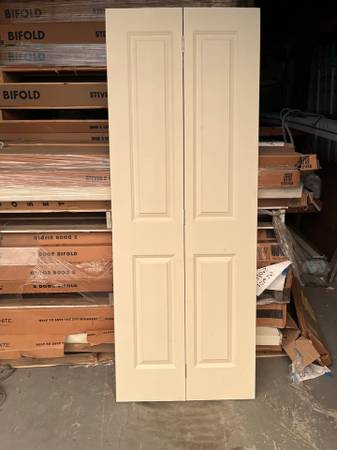 New 30in x 80in 2 Panel Smooth Bifold Door. Hinges are bent.