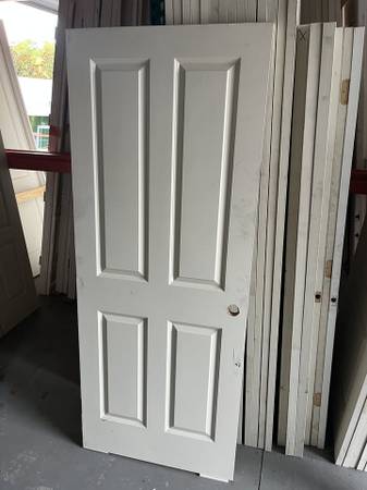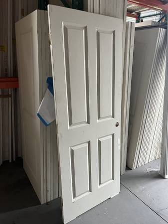 New 32in x 80in 4 Panel Smooth Interior Door Slab Hollow Core. Hinges are mortised, and door is bored for lockset, as shown in the pictures. I have just 1 of these doors available.
