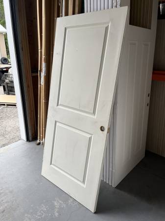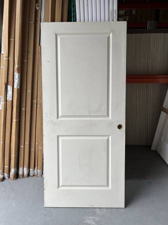 New 36in x 80in 2 Panel Square Top Smooth Interior Door Slab Hollow Core. Hinges are mortised, and door is bored for lockset, as shown in the pictures. I have just 1 of these doors available.
