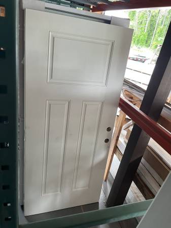 New 36in x 79 1/4in 2 Panel Craftsman Smooth Fiberglass Exterior Door Slab. Hinges are mortised, and door is bored for lockset, as shown in the pictures. I have 5 of these available. $160ea