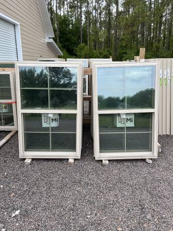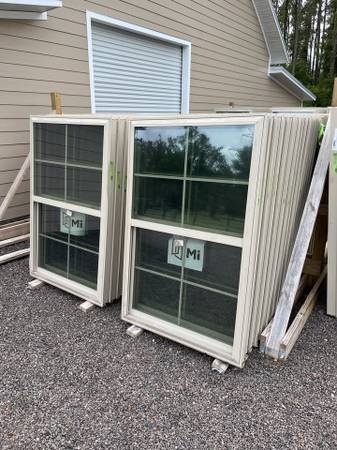 New 38in x 58in Mi Almond (Tan Color) Single Hung Window 4/4 Grid Block Flange. Double pane, low-e, argon filled, screen included. I have 28 of these windows avilable. $180ea