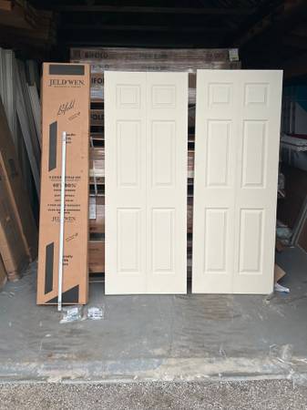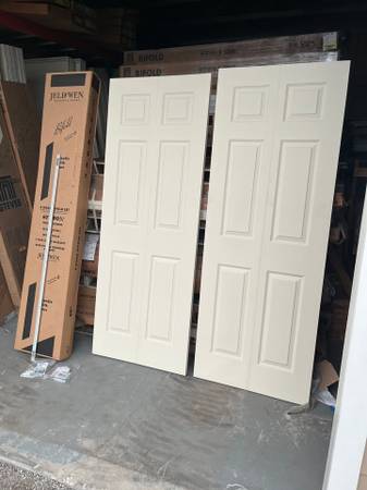 New 60in x 80in 6 Panel Wood Texture Bifold Door with Hardware. I have 3 of these available. $160ea