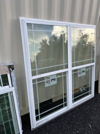 New 71 5/8in x 71 1/2in Mi Twin Single Hung Window Prairie Grid Nail Fin. Double Pane, low-e, argon filled. I have just 1 of these windows available.