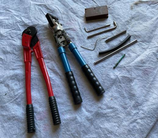 View Rail Stainless steel cable railing system for sale. The system includes 17, aluminum posts that are 40" high, top rails, stainless steel 3/16" and 1/4” cable, all hardware, installation tools, and manual. There is over 70’ of railing when posts are placed 4’ apart as coded The system is in very good shape, just needs recoated. Originally cost over $7000. Local pickup only. $500 or best offer