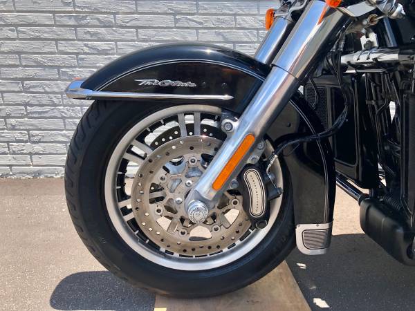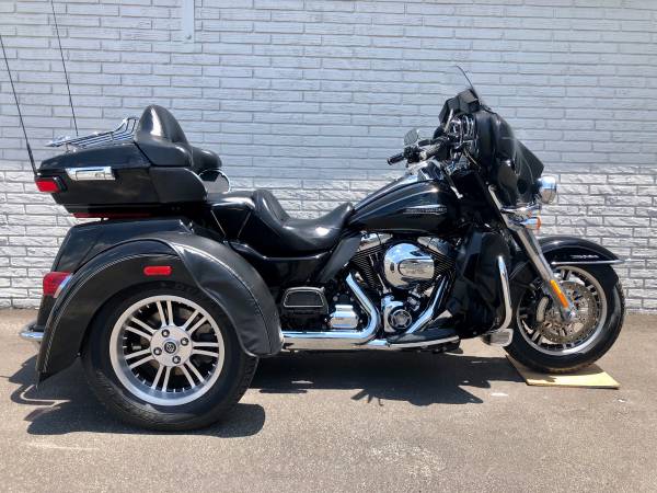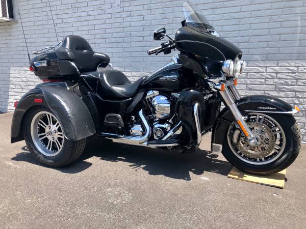 There is a 2014 Harley Davidson TriGlide Ultra Classic with only 15k miles. This bike features the 103 in.³ motor, rear fender, custom exhaust, bright a**, lights, HD, fender bra, live to ride chrome, accents, as well as other chrome accents and custom grips. This bike has just received its 15,000 mile service and brake flush. It is ready to go. Come pick it up.