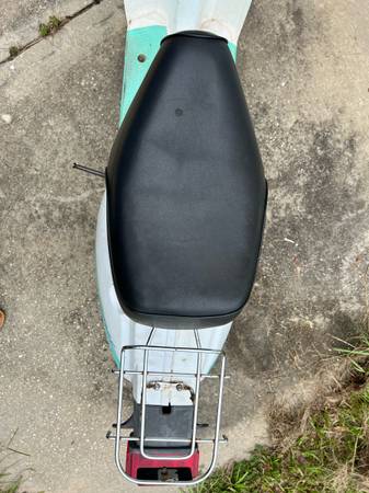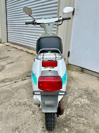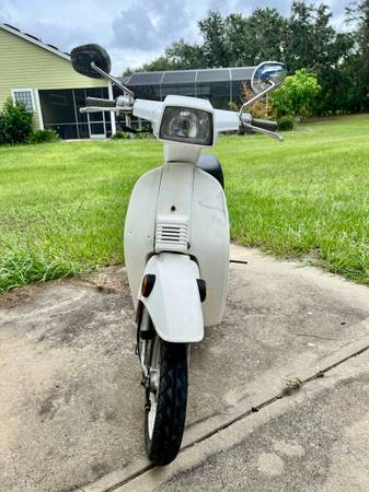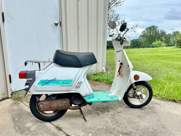 1986 white Honda Spree 50cc motor scooter. A few scuffs and scratches. Scooter in good condition just needs a good cleaning. Bill of sale.