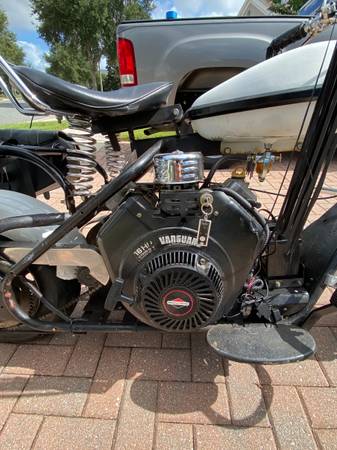 Electric Start, Vanguard V-Twin 16 HP Engine, upgraded 10inch aluminum wheels and tires. Looks like a little Harley. I have additional parts to include the fork cover and windshield. I also have a...