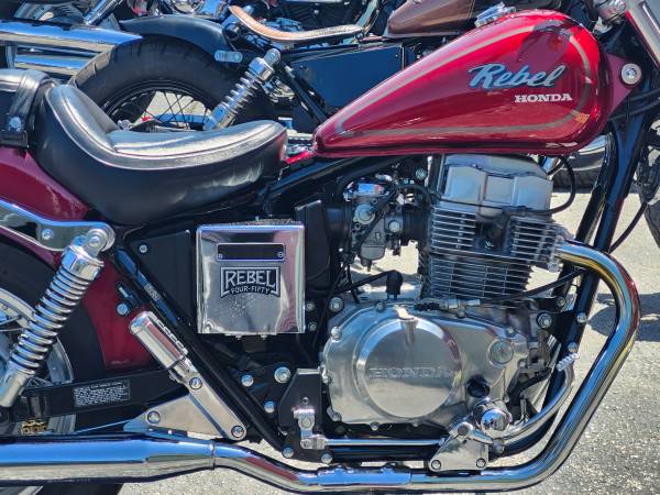 THE REBEL IS FIRST CLASS, CUSTOM SEAT, BARS, CUSTOM MELLOW EXHAUST, ENGINE COVERS POLISHED, BEAUTIFUL CUSTOM PAINT