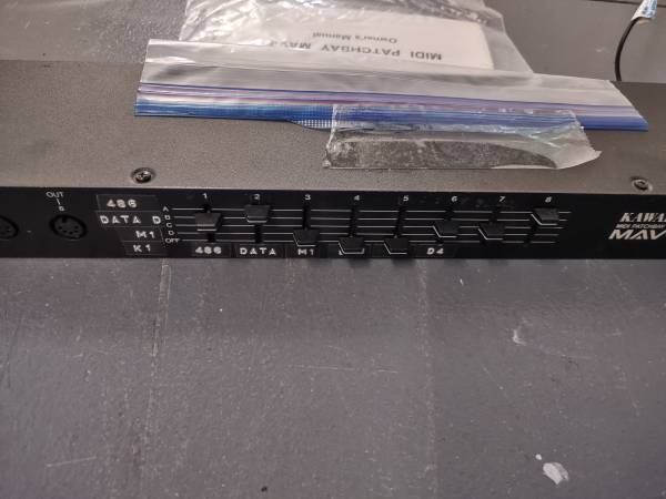 For sale is Vintage KAWAI MAV-8 MIDI Patchbay 8 Outputs 4 Inputs Splitter Rack Sound Module in excellent cosmetic and working condition. Unit comes with original AC Adapter and instruction manual. Local pick up only. $ 70 Cash . Serious buyer please call or text, No emails please !!!