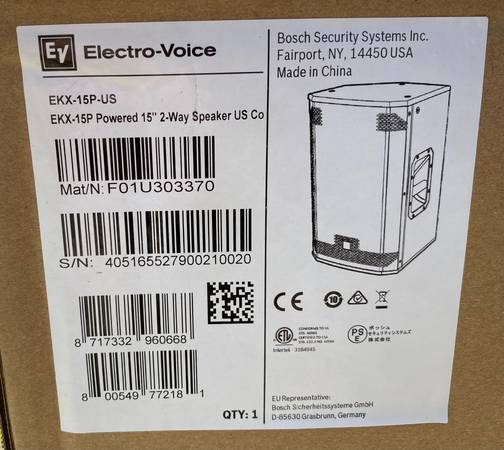 NEW IN BOX Electro-Voice EKX-15P 15" Powered 2-Way, 1500 Watt, Professional-Grade Speaker with Padded EV cover. (This is not an entry-level or mid-grade speaker.) Just $575!