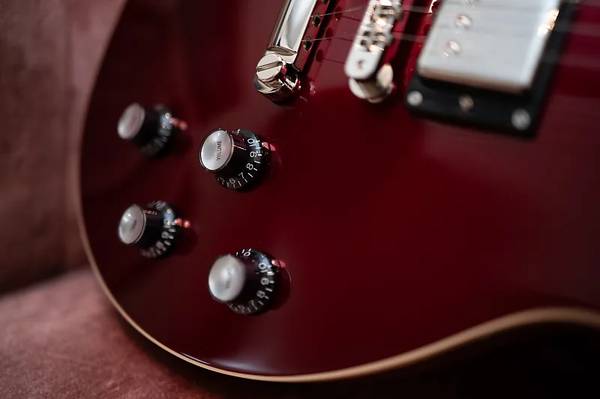 For sale is a 2024 Special Edition 60's Burgundy LP Standard. Guitar has been upgraded with all brand new all nickel OEM hardware, single line Kluson tuners, ABR1 bridge etc, the pickups are Kent Armstrong. The headstock suffered the infamous "Gibson smile" but has been professionally repaired and refinished with OEM nitro lacquer and our signature "Deep Stinger". The repair is not visible from back of the neck and only a small line on the face of the headstock which can only be seen at a certain angle, which is normal given nitro lacquer does shrink over time. Guitar plays great and is setup for 9's. If you have any questions, please ask.