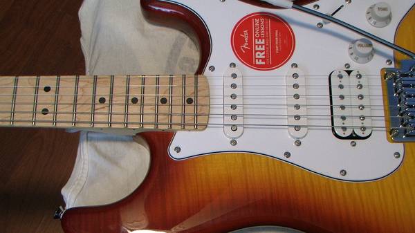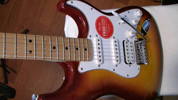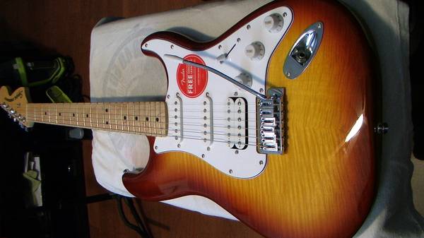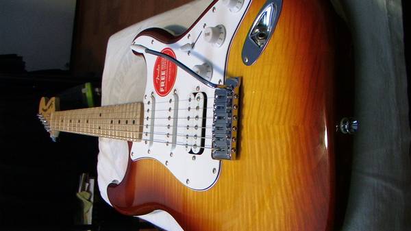 For sale is a 'like new' Squier Affinity Stratocaster FMT HSS Guitar with a Maple Neck in Sienna Sunburst Gloss Finish. Guitar was just set-up with D'Addario gauge 9 strings and plays and sound great. It also has a beautiful flame top finish and looks like a much more expensive guitar. Sweetwater is selling these guitars for over $400 with tax. Local cash sale only and no trades. $249 Thanks.