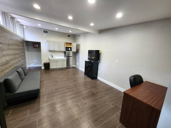 24/7 access. Private bath, shower, wet bar, refrigerator, microwave, sleeping sofa, TV, furnished. All utilities included, high speed internet.