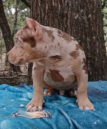 Beautiful ABKC American Bully Pups. Florida State Health Certificates. Merle tris, Tris and Ticked Tris. Check out my Facebook BullKat Kennels for more pics and video or text