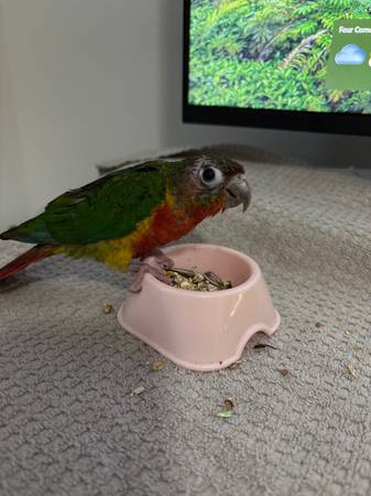 I have a green cheek. Unsure of age and gender but I’m having to rehome him. I’ve had him since October and life didn’t go as planned. Asking a rehome fee will come with cage and whatever food I have