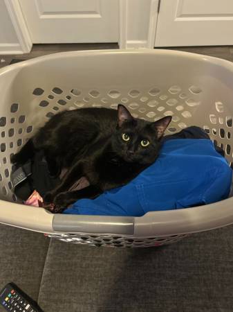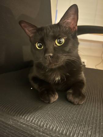 Our sweet black kitty Pixie has gotten out. We live in the townhomes behind the new Bojangles. She's very distinctive - she only has a nubbin for a tail. My kids are devastated, as we just lost a dog recently.