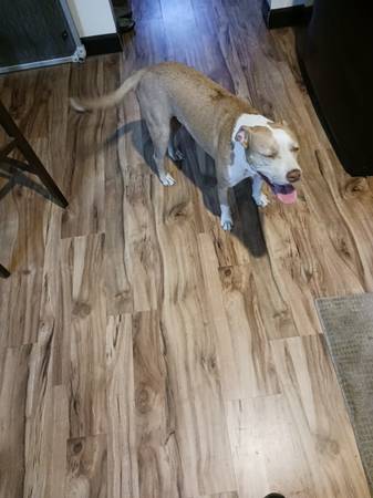 Rehoming 1.5 year old male mix . He is loving and house trained . Loves to play and go for walks . Not good with cats . Small rehoming fee
