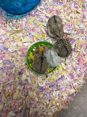 I have one mother and 4 baby dwarf hamsters please bring a cage. $10 each