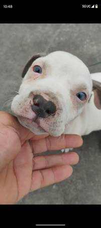 I have a 8 week old pit bull puppy all white with only his ears are blue very playful very energetic very loveble and adorable unfortunately I can't keep him I tried to keep him but my land lord said different so iam rehoming him his name is. Allday so I have to find him a home before the 1st of next month iam leaving town for two months so please find it in your hart to give allday a new loveble home please . Rehoming fee $250 show contact info