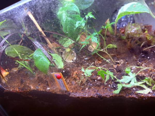 20 long tank with glass lid and stocked with live plants. Upgraded tank so have to resell this one. Soil is great for growing live plants with isopods (pandas) and springtails. Comes with led lights...