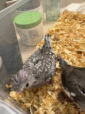 5 weeks old being hand fed, asking $100 rehome fee if you get more than more. $150 each Love bird around 2 months old and he/she semi tame. Can rehome him for $100