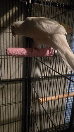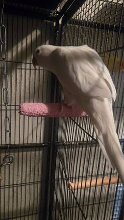 I have an albino Indian ringneck for rehoming. She is semi tame. Can be fully tamed with a little work. Im asking $700 obo comes with a cage. Txt me if your interested my number is .