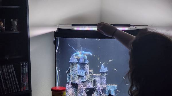 Beautiful neon blue crayfish needs a new home! Also comes with some Guppys. These are his tank mates and tank snacks! Comes with two bags of food to get you started. Very easy to care for! Fish tank...