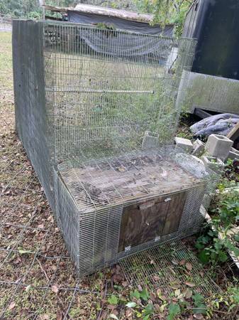Heavy gage wire cage with nesting box Measures 6 ft long, 3 feet wide, 4 ft high Nesting box size 3 ft long, 19 in high Paid 600 for it asking 300
